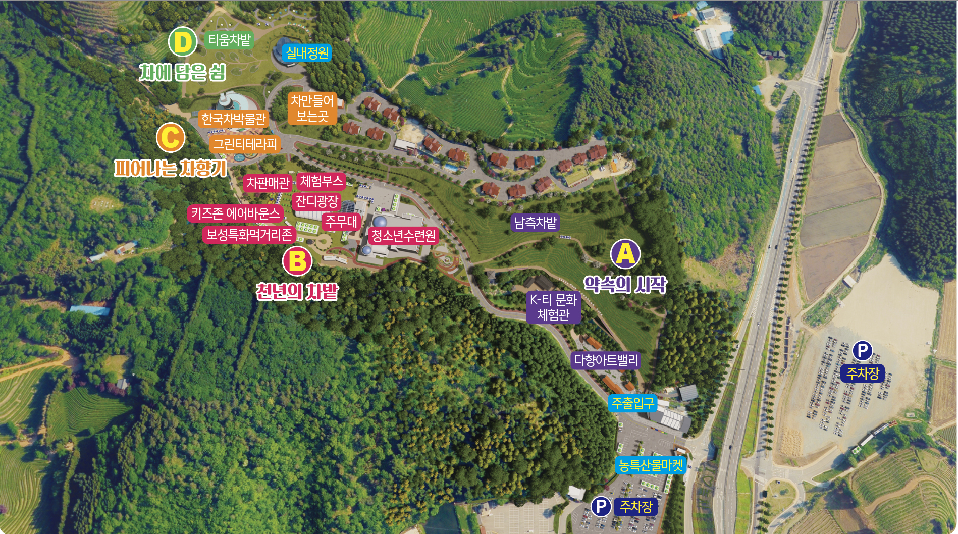 - 한국차문화 공원 및 대한다원 보성녹차밭 일원의 주차장 4면을 이용하시기 바랍니다.